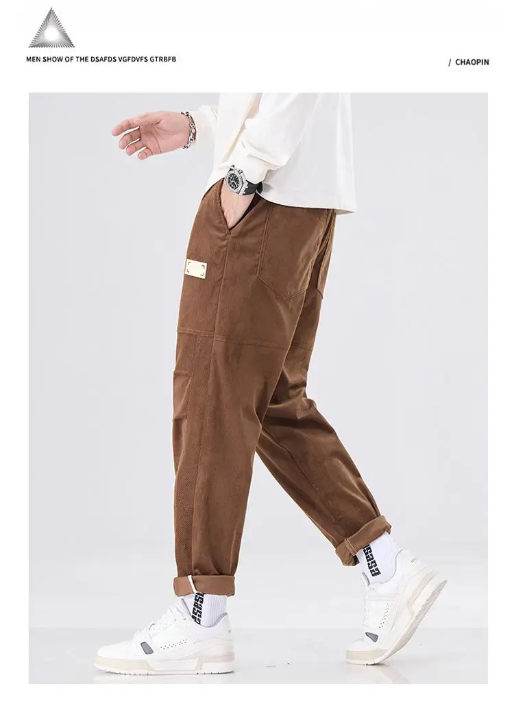 Autumn Winter Men Joggers Harem Pants Japanese Retro Corduroy Trousers Baggy Y2K Sweatpants Versatile 2025 Harajuku Clothe Trend
