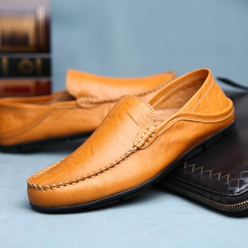 Genuine Leather Men Shoes Casual Luxury Brand Formal Mens Loafers Breathable Slip on Male Boat Shoes Plus Size