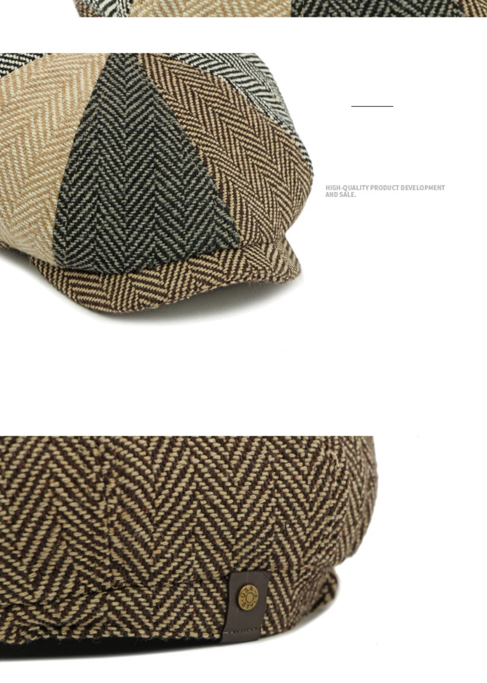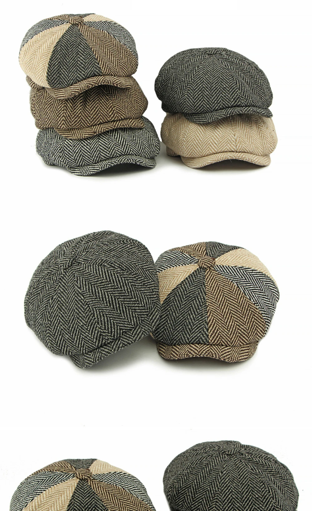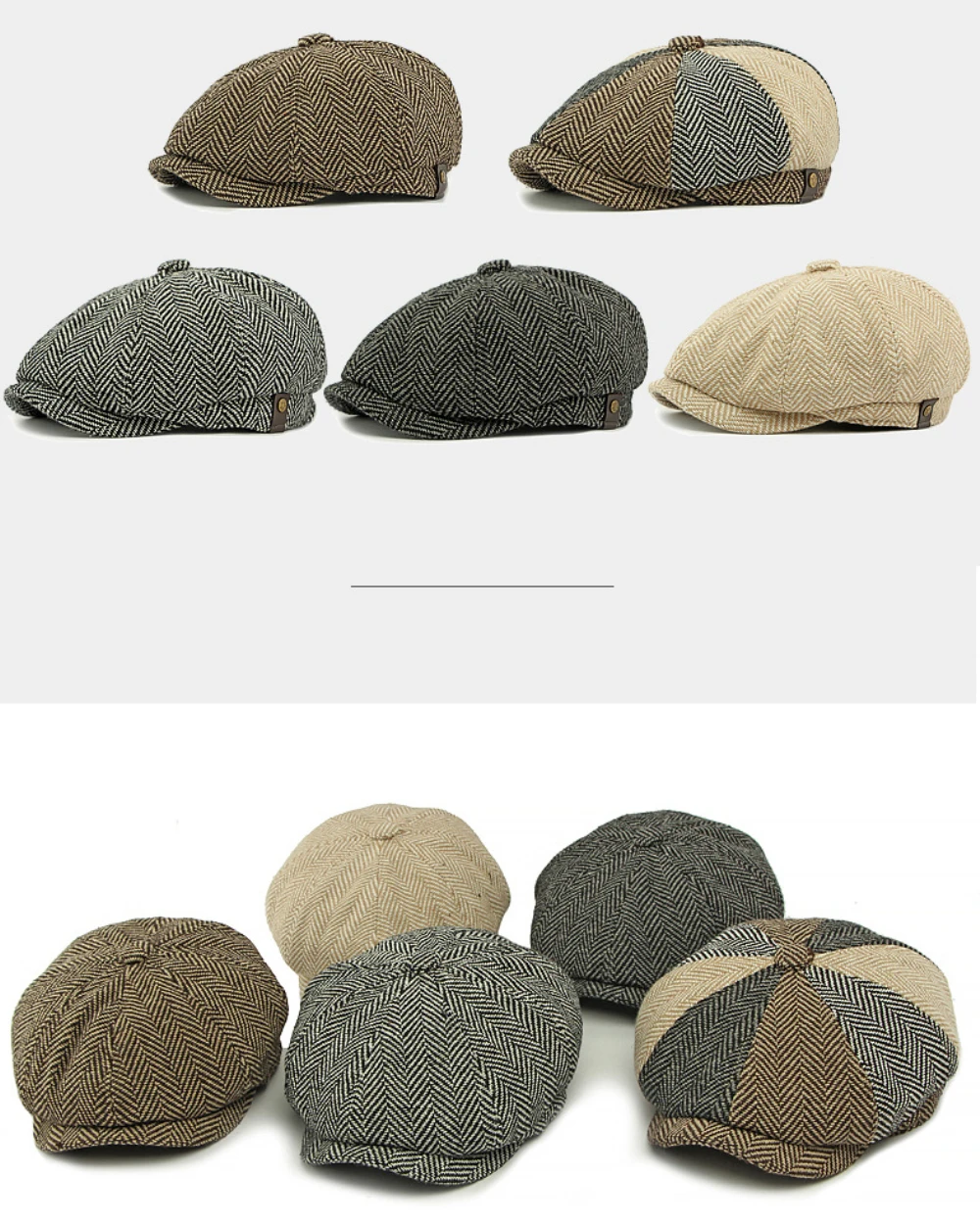 HT4835 Berets Autumn Winter Beret Hat Vintage Striped Octagonal Cap Male Female Ivy Flat Cap Artist Painter Adjustable Beret Cap